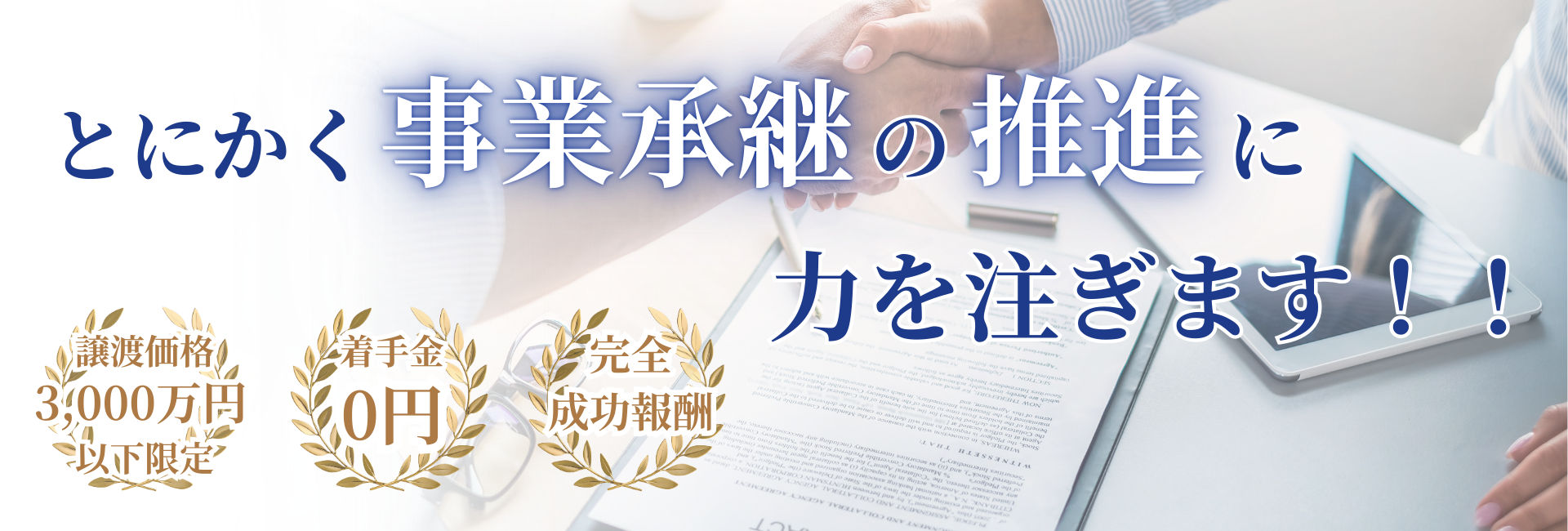 弊社では以下のような案件を得意としておりますが、事業継承のほか宗教法人などの特殊な法人まで、どのような案件でも掲載無料でお取り扱いしております。またただ掲示板方式でマッチングを行うのではなく、売主様や買主様のお話を聞いてご事情に合わせ丁寧な説明を心がけております。